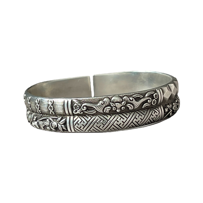 Retro Blooming Prosperity Pure Silver Bangle