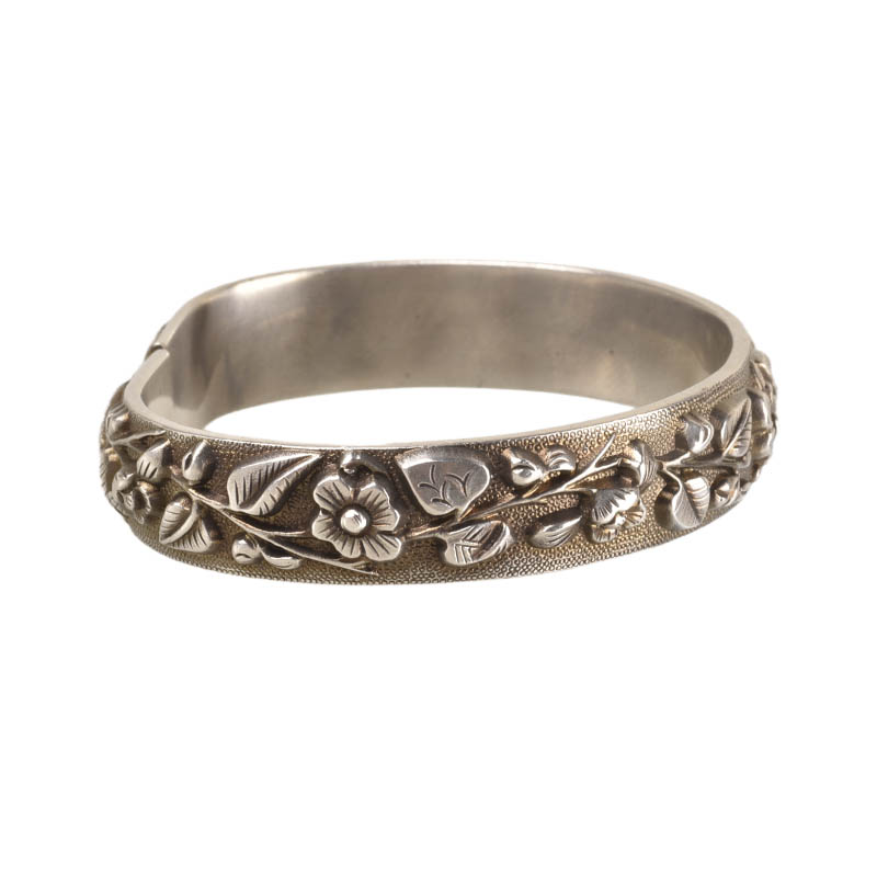Mascot Twined Flower Pattern Vintage Distressed High Relief Bracelet Auspicious Meaning Ethnic Silver Jewelry