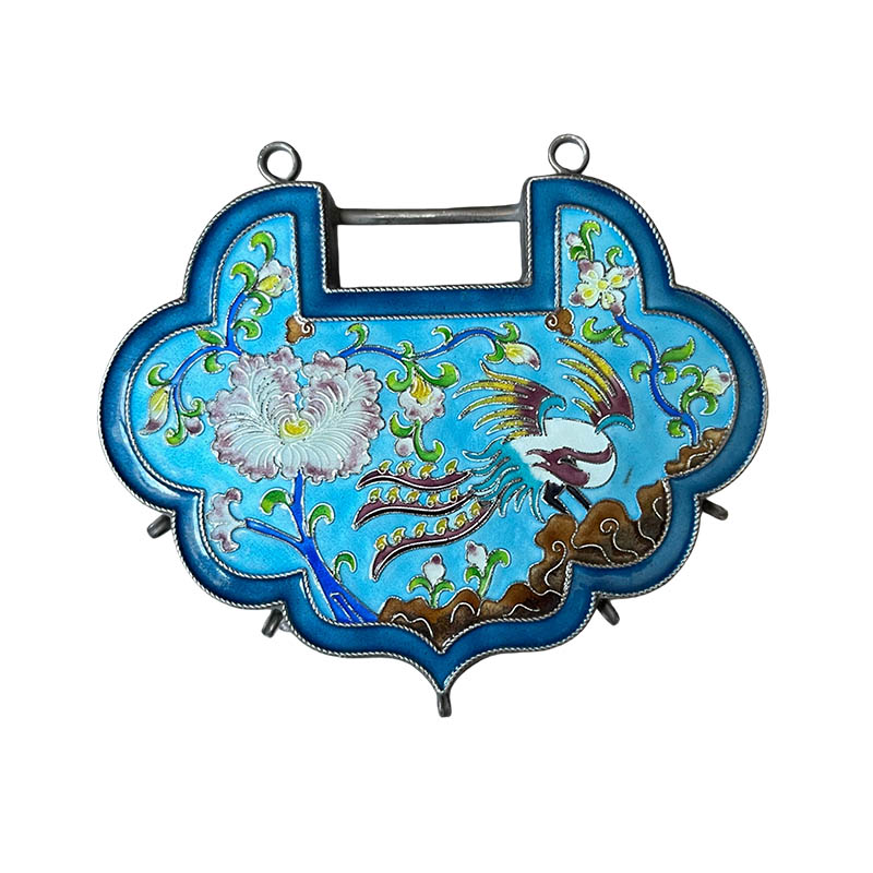 Retro "Phoenix Through Peony" silver lock, approx. 76.5g, 90mm long, 71mm wide