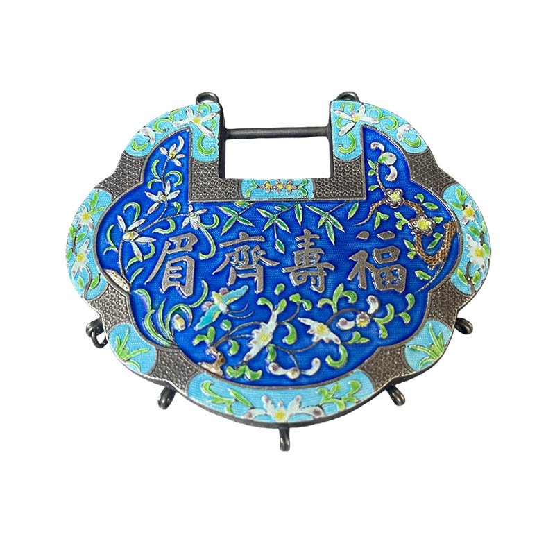 Retro "Fortune and Longevity" enamel silver lock, approx. 82.2g, 90mm long, 70mm wide