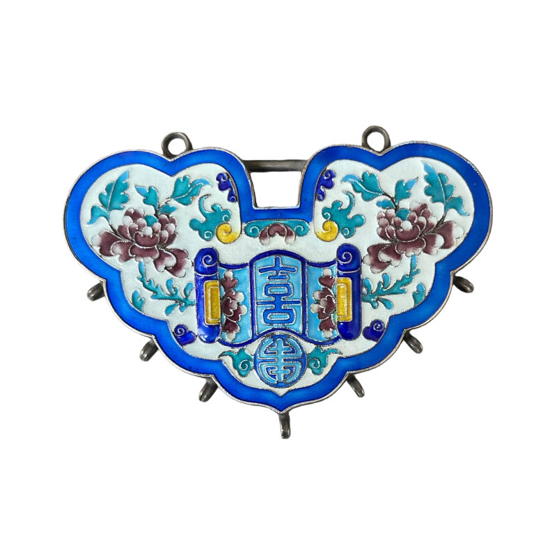 Retro "Lion Rolling Ball" enamel silver lock, approx. 46.9g, 81mm long, 49mm wide