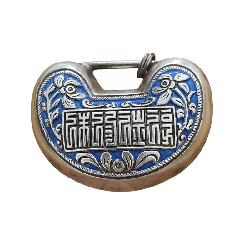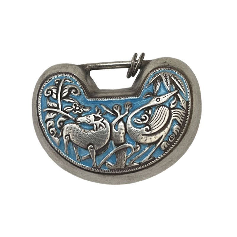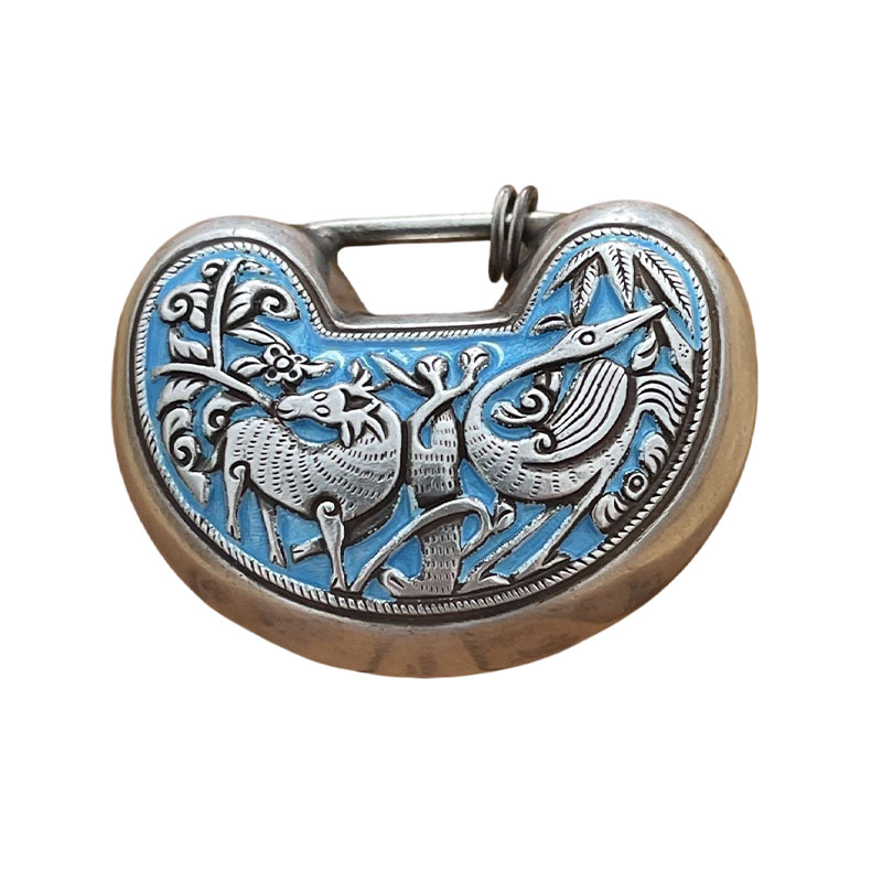 Vintage "Deer and Crane Celebrating Spring" silver lock, weight approx. 21g, length approx. 44mm, width approx. 31mm